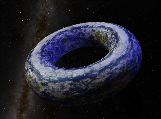 Sim, é isso mesmo! A expressão que eles usaram em inglês é 'Torus Earth', e segundo essas novas teorias nosso planeta teria a forma de uma rosca, como se fosse um donut espacial gigante.